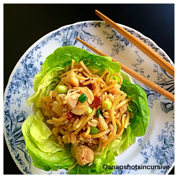 What’s Cooking in Gail’s Kitchen? Appetizers to Desserts: Loaded Lettuce Cups! Eating with your fingers is so much fun! Here’s an idea for supper that is not only kid-friendly, but has an Asian flair that adults adore. By toasting the rice and noodles in butter, it gives the food a nice crunchy taste complimented by sesame and soybean undertones. Add chicken and water chestnuts for a healthy meal. The mere fact that it’s all wrapped up in the soft, buttery Boston lettuce leaves make it an all-star hit!