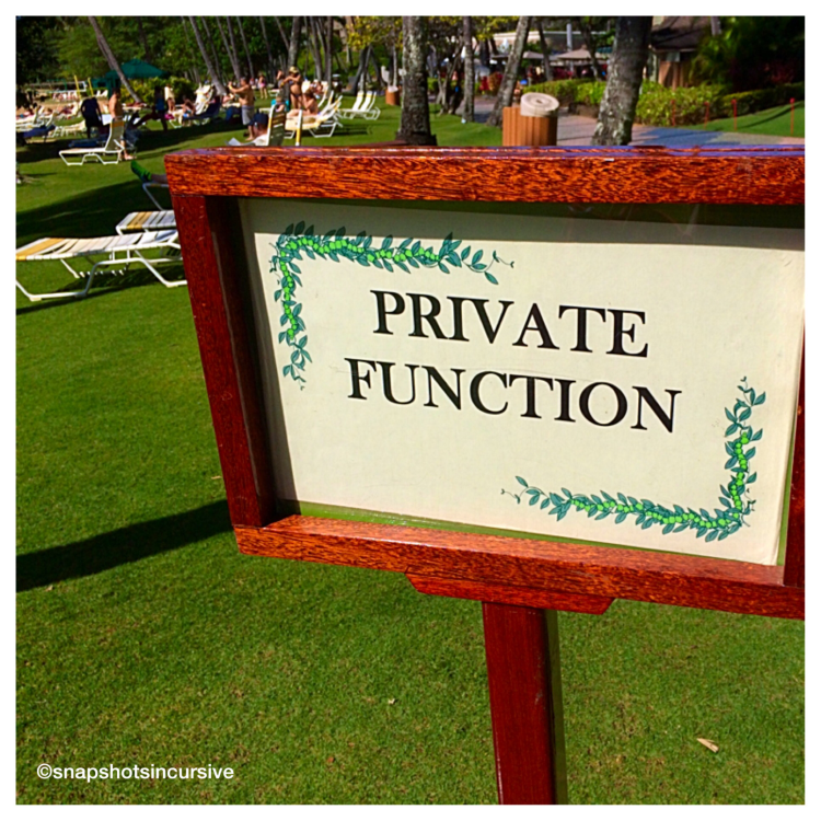 Upon closer scrutiny, a sign was visibly posted at the cordoned off area which read “Private Function”. Just beyond, heat waves shimmered against a baby blue sky. There must have been at least a 200-pound sow covered in a heavy plastic tarp. The edges were buried in dirt. Apparently steam had raised the plastic into a taut dome. The aroma of salty meat infused with smoke struck me in the face on its way across the bay. It smelled delicious! Meanwhile, workers busied themselves moving about filling tiki torches, setting up tables, and stringing white lights. Tonight was the night for a traditional Hawaiian Luau.
