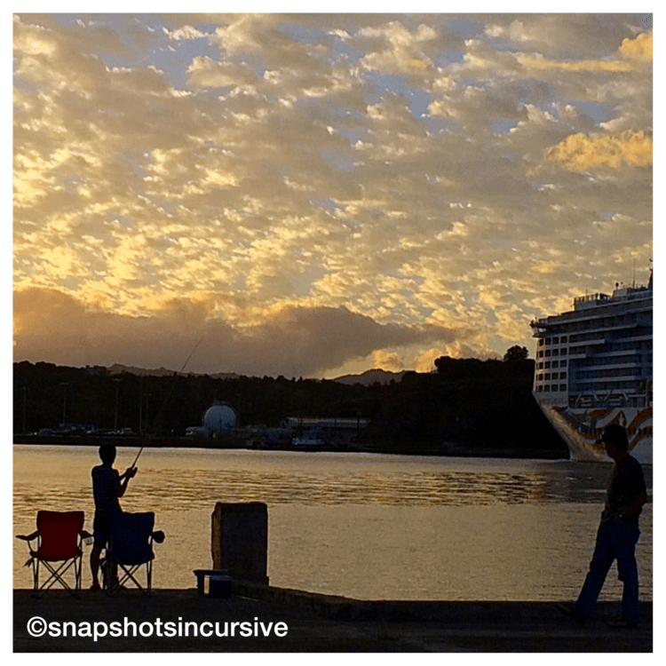 This is where they come at the end of the day. Some to fish, others to unwind, and a few to stir up trouble. The sun is setting true west of Nawiliwili Harbor casting ghostly shadows on the gigantic cruise ship nestled in port for the night. From time to time loitering gets a little out of hand on the strip as evidenced by a make-shift grave marker along the sea wall. An empty bottle of Jack Daniels, nicotine stained cigarette butts, and a shrunken deflated condom affirm it. Police make an effort to control the area for neighboring residents, but are stretched pretty thin between patrolling the harbor, checking bar traffic, and overzealous cruise-ship tourists. Everybody wants to have a good time.