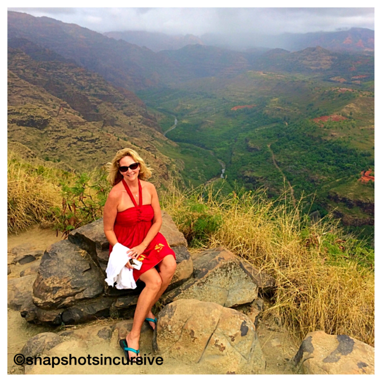 The tour book boldly proclaimed the landing site for Captain Cook was “located in the Lucy Wright Park and just across the Waimea River from Russian Fort Elizabeth.” Still, as we cruised through Waimea Town, our attention was drawn instead to the ridge where a couple of magnificent homes were perched on a bluff overlooking the most breathtaking panoramic view of the coast. As my husband made a right turn where the road steeply grades, we began the ascent of exploration. “What about Captain Cook?”, I inquired. “We can see him from up here,” he explained matter-of-factly. Now I’m not a fan of heights, let alone a winding two-lane road without a shoulder. It’s at times like these, where the view outside the passenger side window drops several hundred yards into the craggy canyon, that I get a little squeamish and lean toward the middle of the car. Don’t worry, I can still see the view of the town below at the ocean’s doorstep spreading exquisitely across the horizon.