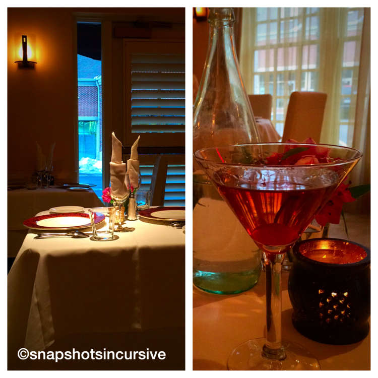 Classical French music filled the formal dining room creating subtle ambience for a romantic dinner with my husband.  Over his shoulder, beyond the foyer, hypnotic flames danced across fragrant firewood logs nestled on the glowing hearth.  We clinked our glasses together and dubbed the evening “Manhattan by Candlelight”.  I sipped on a classic Southern cocktail garnished with a maraschino cherry, straight-up.  The graceful curve of the martini glass offered an invitation to taste the amber blend of smooth-bodied bourbon kissed with a dash of sweet vermouth.  Gerald quenched his thirst with one of the greatest mixed drinks ever created by a seasoned bartender, the Long Island Iced Tea.  A stouthearted choice, my dear.  The savory dinner was served divine.  We lingered over dessert, relishing every bite of the lightly sweetened soufflé.