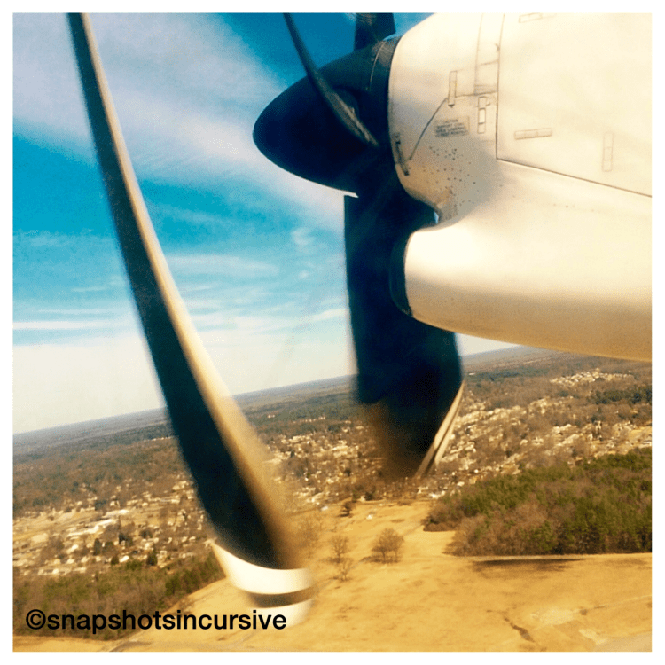 The airplane’s propellers buzzed farewell like a thousand dragonflies circling a murky pond before taking flight. Once airborne, the express “Puddle Jumper” put on an aerial show of flexibility dipping and swaying on irregular cloud puffs like the wooden roller coaster ride at Coney Island. My stomach was left behind.