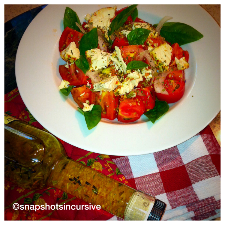 What’s Cooking in Gail’s Kitchen? Caprese Salad! Here’s a refreshingly healthy salad alternative to the traditional Cobb Salad. This little number boasts an international flavor with an Italian influence. Right now fresh tomatoes-on-the-vine are available at the market. Hand-pick them in any size cluster you desire. All natural mozzarella makes all the difference, especially when surrounded by this season’s basil leaves. Pluck the basil from your window herb garden or go straight to the organic produce section of your favorite grocers. As you dive in to this crispy salad, notice the colors of the flag of Italy. Grazie, grazie molto!