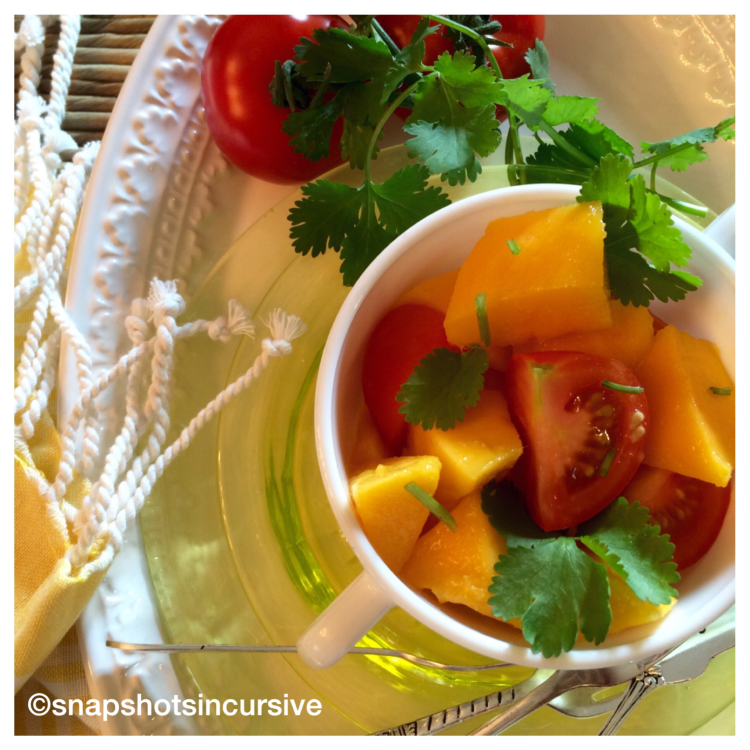 What’s Cooking in Gail’s Kitchen? A Second Helping of Mango Medley! This is one of my all-time favorites when serving fish tacos. It’s fast and easy, not to mention soft and sweet. When the mango is at its peak in ripeness, the juice resembles a combination of peach and pineapple. I know, right! When mixed with Campari tomatoes (which have low acidity) plus fresh cilantro, it’s a perfect blend of flavors. Give it a try and let me know what you think!