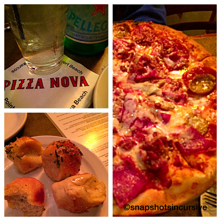 Dining Outside the Home: Pizza Nova of Point Loma San Diego, California! You gotta love a pizzeria that serves hand-tossed garlic knots rolled in rosemary butter as soon as you reach your table. A view of the water doesn’t hurt either. The wood burning ovens lent a coziness to the atmosphere as aromas of time-honored Italian dishes kept our heads spinning. A traditional meat-lover specialty pizza oozing in heirloom San Marzano tomato sauce and fresh mozzarella was delivered to the table on a pedestal. Within seconds, the crunch of the award-winning crust had us yearning for more.