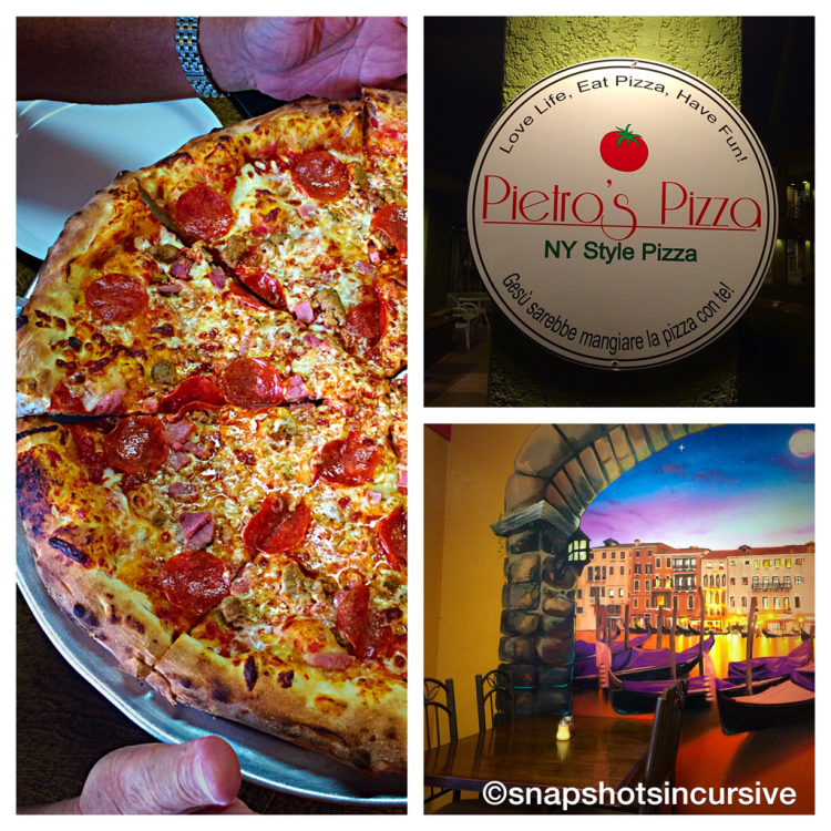 Dining Outside the Home: Pietro’s Pizza in Lihue, Kauai! Just a stone’s throw within walking distance from Kalipaki Beach is a New York-style pizzeria where the crust is thin, hand-tossed to perfection, and every order is cut into eight wide slices. “Makes it easy to fold in half to eat”, we’re told. Crisp and smoky flavored meat toppings complement the bubbly cheese and chewy crust baked in a brick oven. Whether you eat it there or buy it by the slice, check them out when your taste buds crave something Italian.