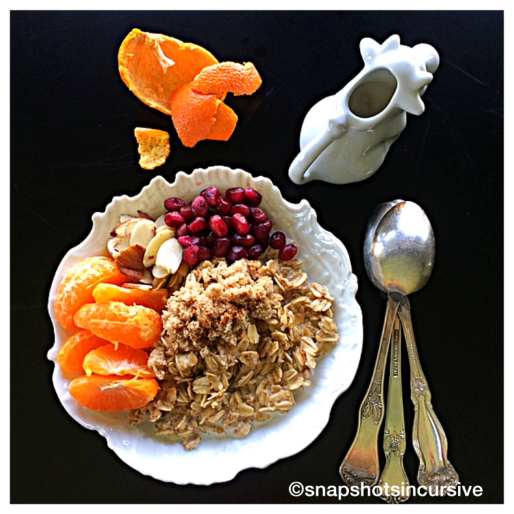 What’s Cooking in Gail’s Kitchen? Food Junkie Favorites: Quaker Oat Breakfast Companions! I must confess, some days a cup of Italian espresso and a crispy wafer roll is enough to get my engine up and running. But on those mornings when I wake up ravenous, I turn to a hearty bowl of Quaker Oats with all the trimmings: pomegranate arils, orange slices, almonds, cinnamon, and brown sugar. I appreciate the fiber, fruit, and nuts for healthy living. Topped with a bit of honey and milk in lieu of brown sugar, and I’m left feeling full for longer periods of time. Plus, it’s a good source of fiber and iron. Switch things up now and then by choosing a bowl of oatmeal for breakfast.