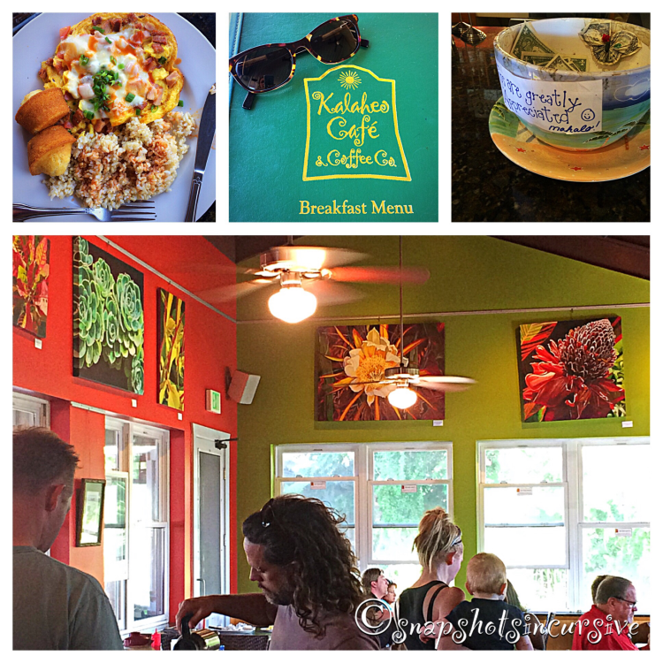 Dining Outside the Home: Kalaheo Cafe & Coffee Company in Kalaheo, Kauai! Breakfast is the most important meal of the day, according to the generous portions served up at the Kalaheo Café. Stick to the favorites: a Very Veggie Omelette with melted cheese or add some Portuguese sausage for the Kahili Breakfast. Choose between a side of rice or potatoes, your way. And don’t forget the buttered toast or incredibly delicious cornbread muffins. Top it off with flavored coffee to rev up your engine. Now you’re beginning to see what I mean. Dine inside or on the front porch with a view of the mountains. Take a deep breath and dig in.