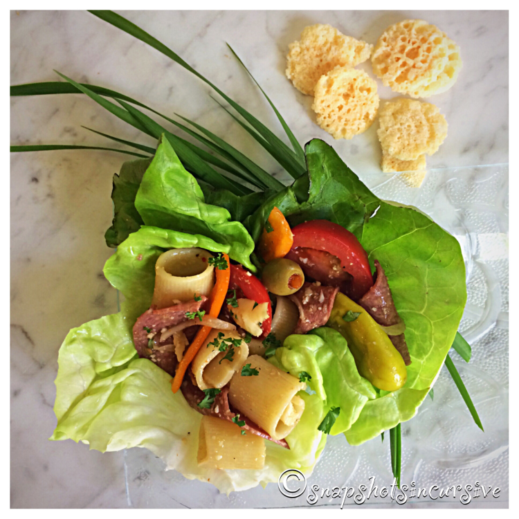 What’s Cooking in Gail’s Kitchen? Foodstuff Redefined: Antipasto Salad! This recipe is for those of you, like me, who choose a zesty salad every time they visit a Deli. In a few simple steps, you can throw this together and let it marinate in your own refrigerator. Make it the night before, or first thing in the morning. By the time you’re ready for the next meal, it’s done. The flavors blend so well when refrigerated, you’ll think it was store-bought instead. Be kind to yourself. Permission granted.