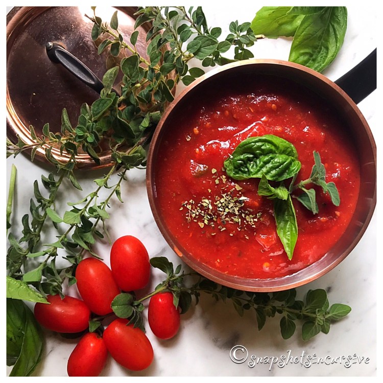 What’s Cooking in Gail’s Kitchen? The Food Whisperer: Original Marinara Sauce! Marinara isn’t just a fancy name for spaghetti sauce, it actually lacks one key ingredient that sets it apart. You guessed it: MEAT. Basically, marinara is a tomato-based sauce infused with herbs and spices. It can be prepared very easily in less than half an hour. Personally, I find it perfect for a meatless meal. I like chunks of tomatoes, the hint of garlic, and a slight kick of red pepper spice. Look again at the snapshot. Perhaps it’s time to make marinara at your house.