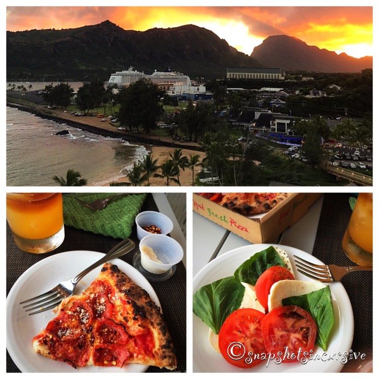Dining Outside the Home: Pizzeria Portofino in Lihue, Kauai! If the aromas of Italian tomato, roasted garlic, and fresh basil waft through the air the second you raise the lid of the takeout box, you already know the pizza inside is going to taste good. The Americano combination of savory sauce, salty pepperoni, and gooey mozzarella cheese make chowing down come easy. Whether the crust is chewy soft or charred crisp, everyone wins at Pizzeria Portofino. That’s the beauty of ordering to please. Spend all day at the beach, then save some serious dough. Dine-in or carry out. For me? With a view like this with a private balcony, it was an easy choice to make.