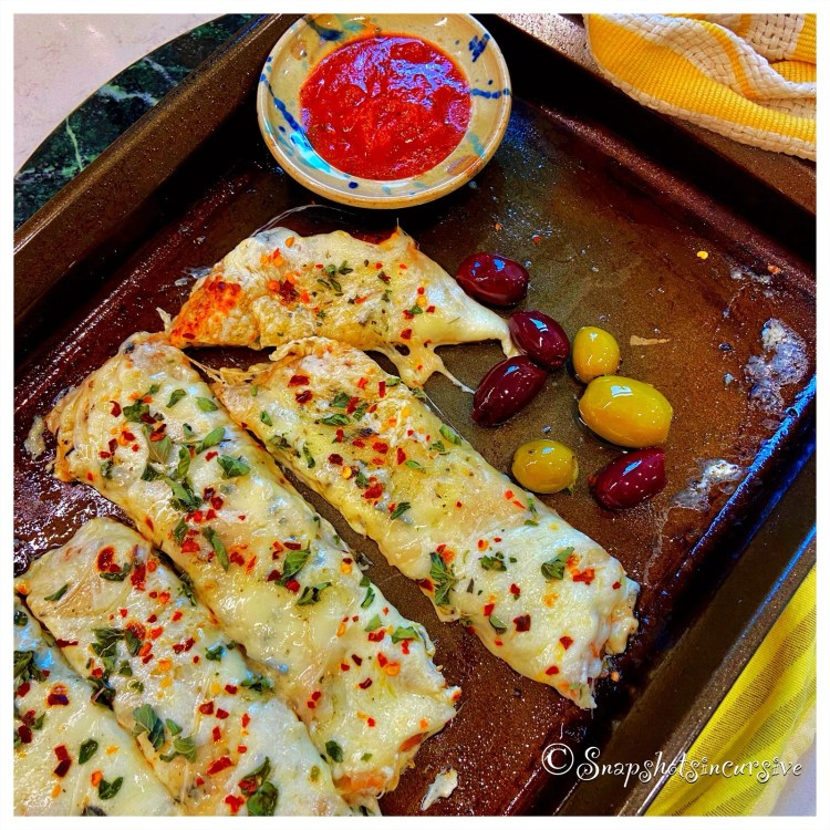 What’s Cooking in Gail’s Kitchen? Time To Eat: Xtra Cheesy White Flatbread! Know what’s better than chewy pizza-like dough? Chewy pizza-like dough slathered in a mountain of cheese that turns gooey after it’s baked! Honestly, cheese can become addictive. I’ve (finally) broken my cravings for added salt by no longer reaching for the salt shaker at the kitchen table. But, cheese. Now, that’s another story. I’m crazy for extra sharp Cheddar, creamy Brie, pungent Bleu, nutty Jarlsberg, smoky Gouda, and the list goes on.