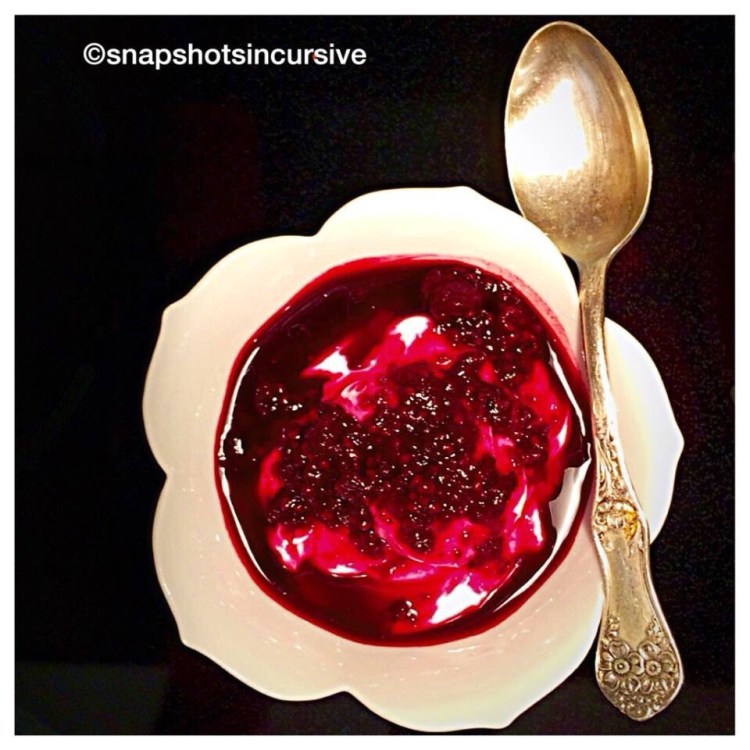 What’s Cooking in Gail’s Kitchen? A Burst of Flavor: Xotic Black Raspberry Sauce! When my friend, Nancy, gifted me with a pound of wild black raspberries from her woods, I knew had to make something special. I wanted that succulent sweet taste to linger long after the season had exhausted itself. The answer was to transform the berries into an exotic sauce. Now I can enjoy them every morning as a healthy topping spooned over a bowl of calcium-rich Greek yogurt. The combined benefit gives me the effects of a probiotic as well as an antioxidant. Thanks, Nancy!