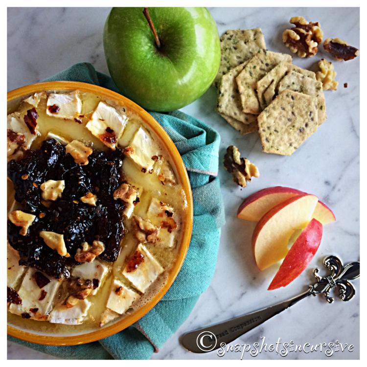 Eating My Way Through the Holidays! Special Edition: Figgy Honey-Baked Cheese!  Looking for an appetizer that brings in the cheer? It’s easy to create your own version of elegance when you use quality ingredients that begin with cheese. To awaken the taste buds, sprinkle in a few red pepper flakes which compliment the natural sweetness of honey. The crunch of walnuts satisfies those earthy snack-seekers.  Bake it all together for the most captivating sweet holiday aroma. Deck the Halls with boughs of Holly. Fa-la-la-la-la…la-la-la-lah!