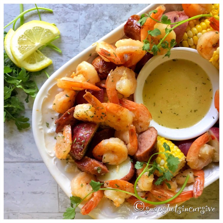 What’s Cooking in Gail’s Kitchen? Elevated Edibles: Jacksonville Shrimp Boil! Whoever came up with a one-pot feast of seafood heaven is pure genius. Succulent shrimp, baby red potatoes, sweet corn on the cob, and smoky sausage. Throw everything into the biggest pot you have and let the flavors intermingle with fresh herbs and aromatic spices. The secret is to stagger the cooking process of the ingredients. After all, potatoes take longer to cook fork-tender than shrimp does. Don’t get impatient or you’ll end up with a bowl of slush. Whatever you do, don’t discard the broth. By adding butter, and serving it in small ramekins, it instantly becomes a great dipping sauce for drizzling over everything or sopping up with a crusty bread.