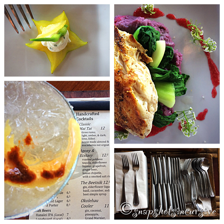 Dining Outside the Home: Oasis on the Beach in Kapaa, Kauai! Sea breezes embrace dancing palm trees as if hula movements come naturally to everything on the East Shore of Kauai. At the Oasis on the Beach, an open-air restaurant, the view is as jaw-dropping as the food on the plate. Experience the catch-of-the-day surrounded by fresh ingredients from local farmers. Your taste buds will be amazed at the flavor explosion in your mouth from citrus star fruit to white flower broccoli. Everything is edible. Taste and see.