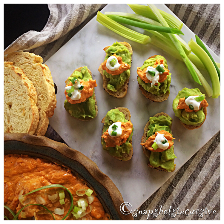 What’s Cooking in Gail’s Kitchen? Foodstuff Redefined: Buffalo Chicken Crostini! Take a spicy hot dip, add the buttery texture of avocado, and finish it with the cooling sensation of natural yogurt. Now smile. You’ve just bitten into an appetizer-turned-meal after an exhausting day you’ll soon leave behind. This is how we treat ourselves right. You’re welcome.
