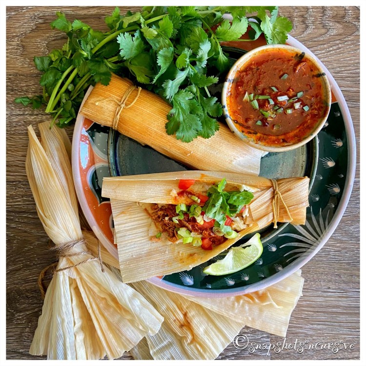 What’s Cooking in Gail’s Kitchen? Cheerful Choices: Pork Tamales! I have high respect for the Mexican culture, especially when it comes to cooking. For years I have procrastinated about making tamales, probably because I love them and really don’t want that to change. Seriously though, for me the Mexican homemade version is labor intensive. Most little girls were taught the family traditions by their mothers and grannies. To them it comes easily as an art form after decades of making the traditional dish. Sauces from scratch can take an entire day if you begin with boiling the chilies and blending the spices. I left that labor of love for the pros. Now if you’re game, roll up your sleeves, tie on an apron, and let’s get started.