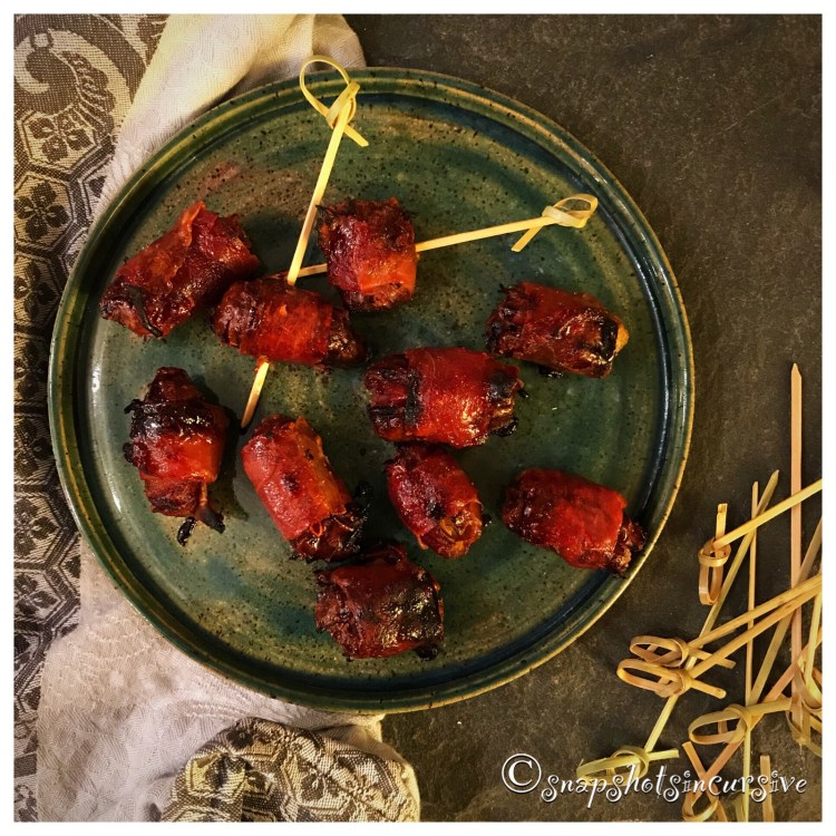 What’s Cooking in Gail’s Kitchen? Equal Measures: Devils on Horseback! The name itself is a conversation starter. I know, right. The colors themselves resemble the “dark side” of our personalities. The small savory dish is made with pitted dates, smoked almonds, and crispy bacon or prosciutto. It’s pretty simple to prepare and is often served as an appetizer at social gatherings. Popular as a finger food, this hors d’oeuvre is perfect for small conversation at backyard parties. Watch yourself. Eating too many may find you a little mischievous.