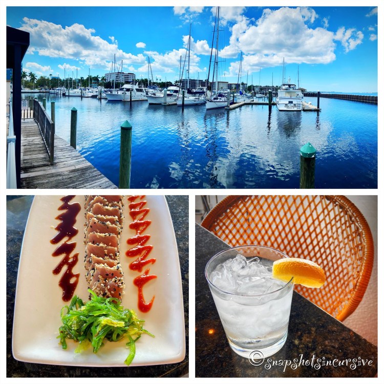 Dining Outside the Home: Mango’s Dockside Bistro & Sushi Bar on Marco Island, Florida! It’s a tough decision when you need to think about sitting outside with a backdrop of the local marina or inside where you can watch exotic salt-water fish swim by in a huge aquarium. Try a tropical appetizer like the Bacon-Wrapped Shrimp Jalapeños. Spicy, with a touch of natural saltiness. It’s a nice starter along with the Yellowfin Tuna over Seaweed Salad. Quench your thirst with a crafted cocktail like the Key Lime Pie Martini. It’s more like a dessert for those who enjoy a touch of sublime sweetness. After all, isn’t that the reason you walk two miles along the beach every day? Eating out is fun and something everyone looks forward to for socialization. The Tropical Island Salad makes quite a statement served in a fresh pineapple boat over a bed of mixed greens. A scoop of Mango’s famous chicken salad takes center stage surrounded by juicy strawberries, crushed walnuts, and Gorgonzola crumbles. The menu goes on and on to satisfy every palate.