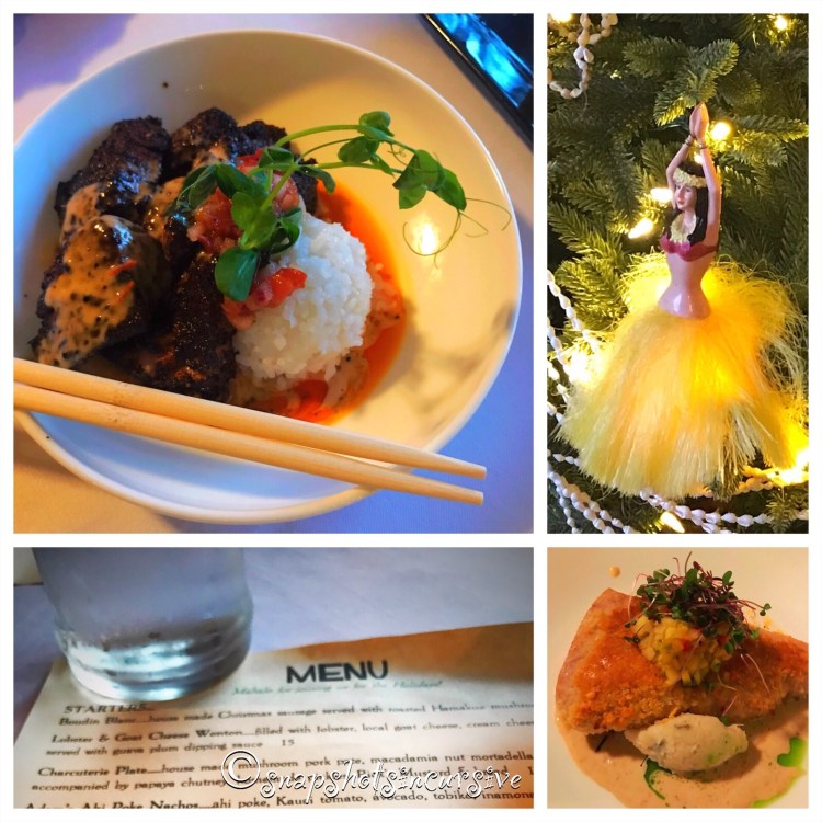 Dining Outside the Home: Hukilau Lanai in Kapaa, Kauai! If you’ve ever wondered how hula dancers keep that slim waistline, perhaps it has something to do with healthy choices. Hukilau Lanai offers farm-to-table fruit and local vegetables as well as fresh fish and seafood. They support local farmers and fishermen who are mindful of the environmental impact. A staff of gourmet chefs continue to be inventive in serving food that is as appealing on the plate as it is on the palate. Garnishes add beauty in addition to aromatic elements. It all adds up to outstanding flavor and top-notch quality.