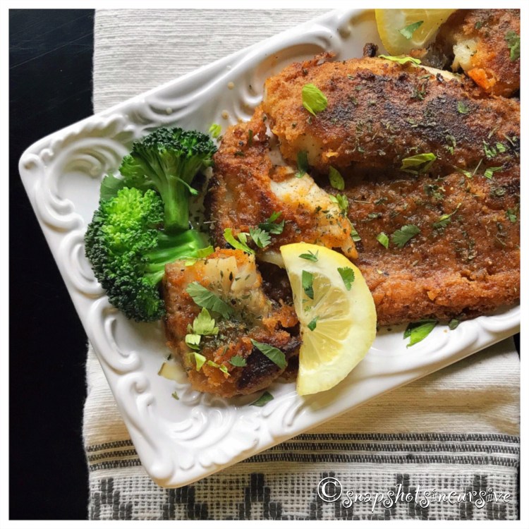 Preheat oven to 400° in a shallow bowl, combine lemon juice, butter, and olive oil. Mix well. Set aside. On a sheet of waxed paper, combine flour, ground coriander, ground cumin, paprika, sea salt, and pepper. Pat tilapia fillets dry. Dip fish in lemon juice mixture before coating with flour coating. Repeat for second tilapia fillet. Warm 2 tablespoons olive oil in an iron skillet over medium-high heat. Add fish fillets. After a minute or so, flip fillets over to sear the both sides. Remove skillet from heat. Add minced garlic to remaining lemon juice mixture. Drizzle over fish. Bake 7-9 minutes in preheated oven. Remove from heat. Garnish with fresh parsley. Serve with broccoli and cous cous.