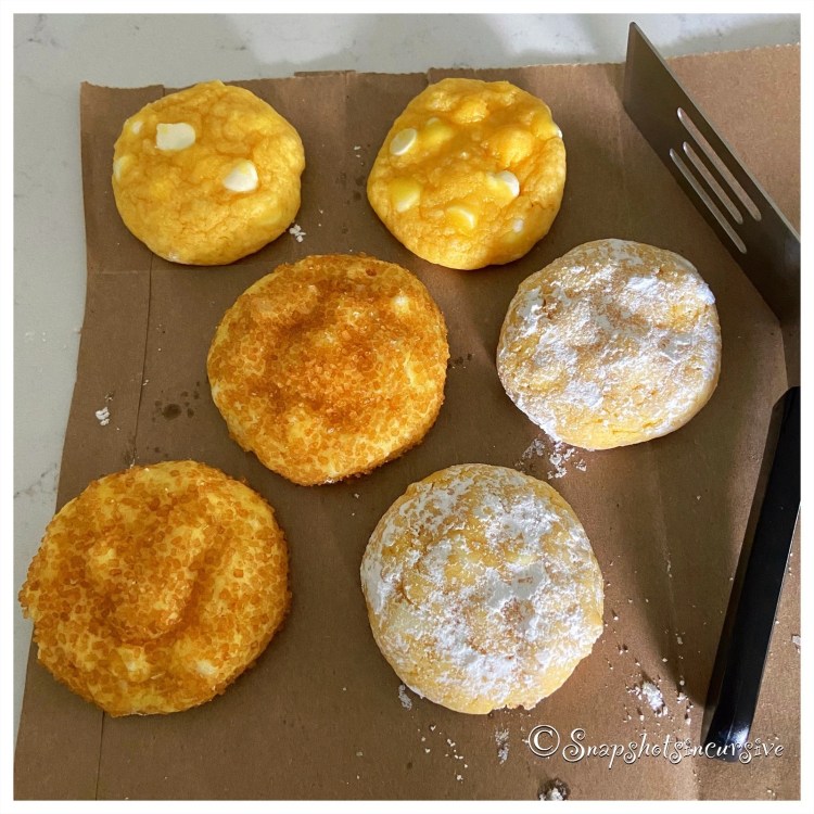 What’s Cooking in Gail’s Kitchen? Uplifting Aromas: Yellow & White Cake Mix Cookies! I never want to live in a world where there are no cookies. I’m one of those people who insist on tasting a freshly baked cookie, still warm from the oven. My kitchen, my rules. I also like the idea of choices. By taking a simple cake mix and ramping up the extra ingredients, I was able to offer my family plain, powdered sugar, and turbinado sugar cookies. Does that mean I needed three taste-tests? I’ll never tell.