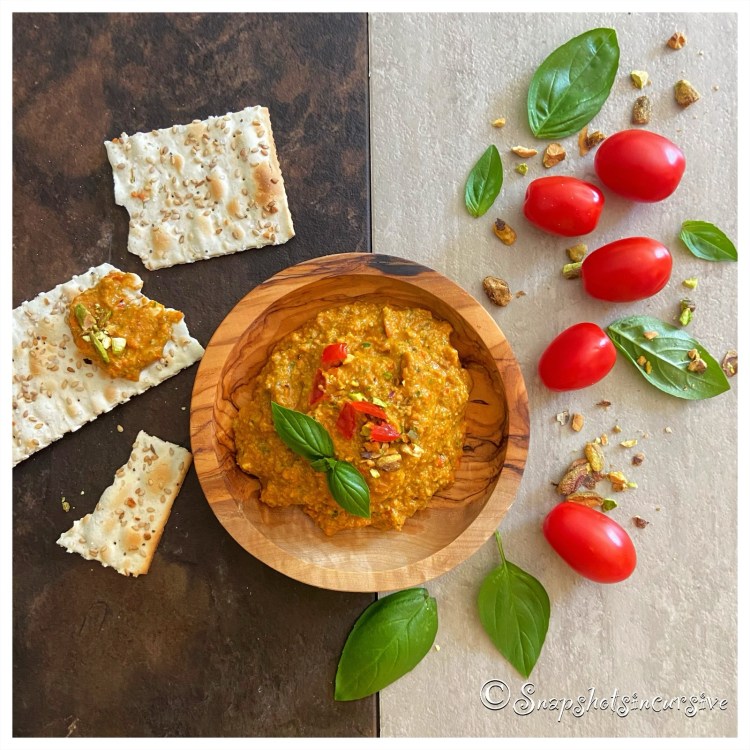 What’s Cooking in Gail’s Kitchen? Food Plating: Basil Tomato Pesto! With a vibrant basil plant that thrives in the Florida sunshine, I get to reap the benefit of having this fresh herb as often as I crave it. The hubs doesn’t care for the taste or aroma of basil, but when I add a heaping tablespoon of pesto to spaghetti sauce, he knows he likes the taste. He just can’t figure out why it seems better than usual. True confessions? I think not! My lips are sealed. I simply respond, “I’ve got the magic touch.” And leave it at that.