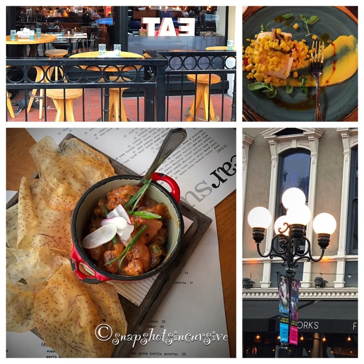 Dining Outside the Home: Searsucker in San Diego, California. How many restaurants do you visit that actually encourage “shared plates”? Searsucker doesn’t mind. In fact they recommend it. They understand the trend of grazing. After all, friends get together to unwind over savory foods and playful cocktails, so this is the best way to try new things. When you think about it, presentation is love at first sight. Small bites can offer big flavor combinations. Take a look at the Spicy Ahi Poke with taro root chips. You can almost taste the toasted sesame and spicy sriracha. But why take my word for it? Take a seat inside for a crowd or table for two on the patio. Either way, you can count on sharing.