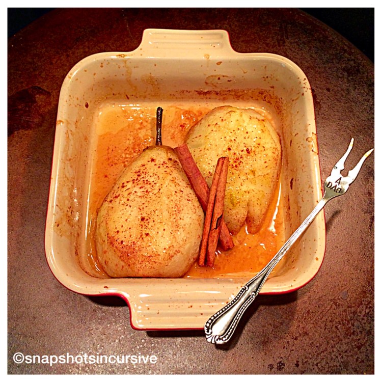 What’s Cooking in Gail’s Kitchen? Enjoyable Eats: Lavender Creamed Honey Pears! Whenever pears come into season, I feel as though a festive dessert is in order. But then again, I’m spoiled. Family members “gift” us with a different fruit-of-the-month selection all year long. A box gets delivered to our doorstep with a little card that tells us about the delectables inside. Often there are serving suggestions as well as ripening and storage tips. Then my mind begins to wander as I plan different ways to come up with recipes. That is, unless I simply succumb to their aroma and eat them as they are. Here’s a festive dessert that will get you raves through the holidays.
