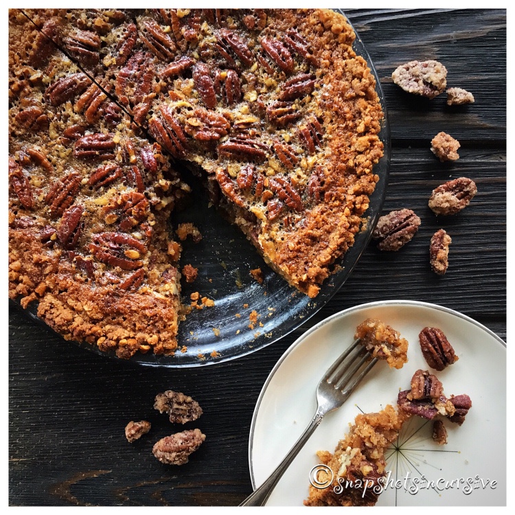 What’s Cooking in Gail’s Kitchen? Food With Soul: Unfinished Pecan Pie! Before you ask…No, this pie is not made with raw dough and there’s no ingredient missing from the recipe. The “unfinished” word in the title simply means you may choose to eat it as is OR top it with sweetened whipped cream, buttery streusel, or caramel sauce. The choice is yours. ‘Course if I wanted to be snarky, I could say it is unfinished because there’s still a piece or two left in the pie plate. Any takers?