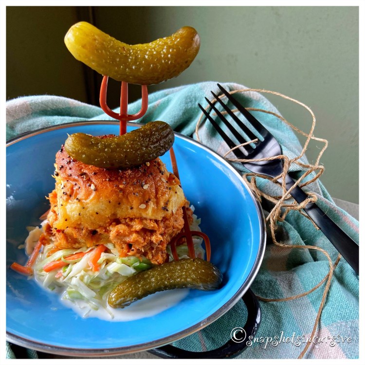 What’s Cooking in Gail’s Kitchen? Country Casual Cravings: Gherkin Pork Sliders! Mini sandwiches are popping up on bar and grill menus all over the place. What that translates to the consumer is unspoken permission to have seconds. That’s my story and I’m sticking to it. It’s a way to try creative small bites to match your mood. Did you know the toppings can include creamy coleslaw, mac ’n cheese, crunchy potato chips, pineapple salsa, onion rings, and anything else you find delicious? Just like this recipe. If you prefer dill gherkins to sweet ones, by all means tweak it up. After all, in your kitchen you’re in charge.
