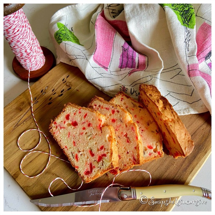 What’s Cooking in Gail’s Kitchen? Time To Eat: Quick Cherry Nut Bread! The nice thing about “quick breads” is they require no extra time needed for allowing yeast to rise. The secret ingredients become the baking powder and eggs, which act as leavening agents. No kneading required. By adding fruit and nuts, the quick bread transforms itself into a breakfast delight along with muffins, scones, and biscuits. Keep the texture light by barely mixing the ingredients before baking. Small lumps are completely acceptable. As long as the oven temperature remains constant, the quick bread will rise just fine.
