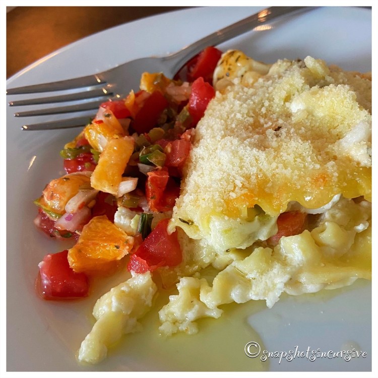 What’s Cooking in Gail’s Kitchen? Bright Ideas: Fabulous Seafood Lasagna! Because I really like seafood, and for the first time in my life I have access to it, I decided to think “outside the box” for a new dinner idea. Combining pasta and seafood seemed like a nice transition. To keep the cost down, I did end up substituting imitation crabmeat, but of course you may use the real deal, especially if you have connections with a fisherman. I’m working on that.