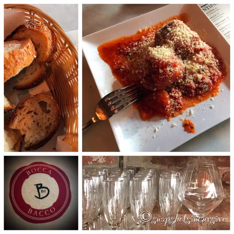 Dining Outside the Home: Bocca di Bacco Theater District in New York, New York! Pay attention when a waiter tells you where he goes for dinner when he’s off work. It’s usually one of those best-kept secrets. If you don’t have a reservation, no worries. Snag a seat at the bar. Bartenders are usually pretty friendly, you can linger over drinks, and when you’re ready for dinner…they happily accommodate. Bocca di Bacco in the Theater District is hip, trendy, popular, and within walking distance of a Manhattan hotel. You’ll realize that as soon as you cross the threshold of this neighborhood trattoria, people flock here for a cozy atmosphere. Distant laughter and glasses clinking are cause for celebration. If Italian small plates are more your style, prepare to be amazed. Not everything is pasta, but it is Italian, so sit back and inhale the aromas.