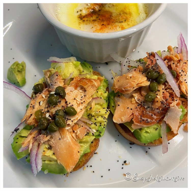What’s Cooking in Gail’s Kitchen? A Burst of Flavor: Holy Capers-Salmon Avocado Toast! Whenever I have leftover grilled salmon, this is my favorite indulgence. The first time I made it, my husband and I literally stood at the kitchen counter nibbling on it until it was completely gone. Each morsel had us licking our fingers and begging for more. The combination of lemon thyme and salty capers balance the slightly smoky texture of the salmon. It’s followed by a crunch of sesame seed artisan toast with a creamy avocado finish. If you take the time to sit down and enjoy this delightful open-face sandwich, think about pairing it with a light and fruity rosé wine. It’ll tickle your palate and have you giggling all afternoon or evening long.