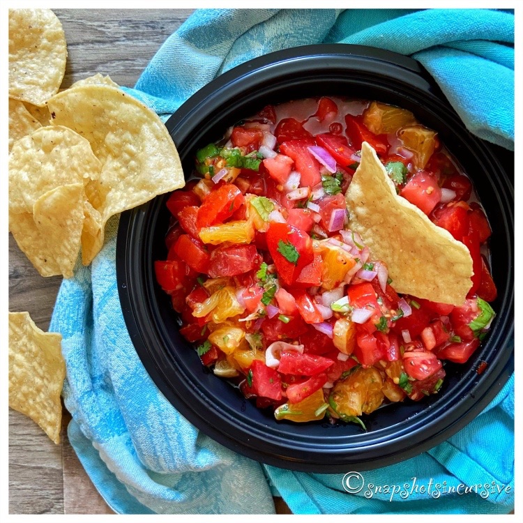 What’s Cooking in Gail’s Kitchen? Palatable Possibilities: Orange-Tomato Pico de Gallo! Chunky sauces and relishes make a wonderful addition to any meal, in my opinion. First of all, they can be substituted for a vegetable side dish. They also serve as a nice condiment for stuffing into tacos or for sharing a plate of scrambled eggs. The vibrant colors will even catch the eye of a fussy-eater, if you know what I mean. Pico de Gallo compliments seafood, pork, chicken, and beef as well as any vegetarian star attraction. Better make a batch for dinner tonight. It’s a healthy option you can thank me for later.