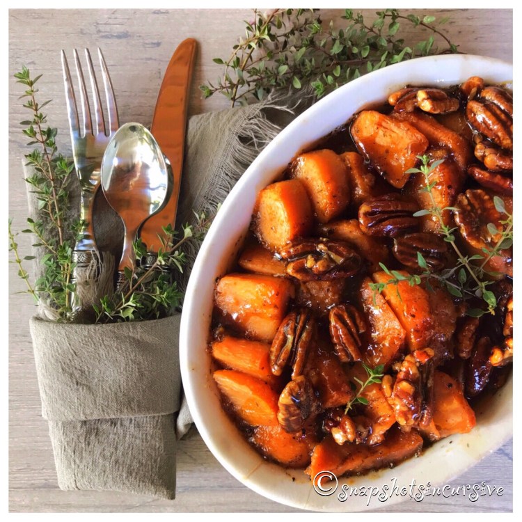 What’s Cooking in Gail’s Kitchen? A Symphony of Flavors: Bourbon Yams! As if we needed another excuse to eat yams. Their flavor alone is practically permission to devour sweets with that hint of vanilla bean. Amirite? I especially like the buttery crunch of pecans. Next time add some bourbon to the mashed potato combo. I promise you, it will totally elevate the experience. Like I said, Dessert.