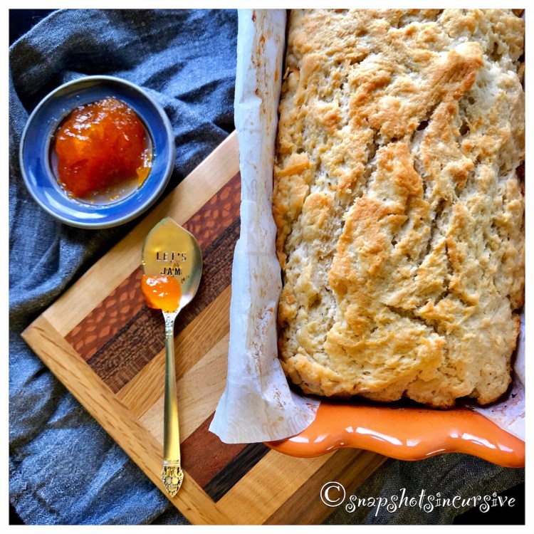 What’s Cooking in Gail’s Kitchen? Talking Points: No Yeast Beer Bread! Never in my wildest dream did I ever realize there would be a shortage of all-purpose flour and yeast. Yet, the grocery store shelves were bare. I don’t know if it had anything to do with panic-buying during the coronavirus quarantine or if people were baking up a storm in isolation. Homemade bread is a comfort food, after all. Kneading dough can be a distraction from stay-at-home kids and social media rants. Plus the incredible aroma of bakery bread is soothing and rewarding. So, the obvious answer was to go to the fridge and open a can of beer. Beer acts as a leavening agent, as long as baking powder is included in the recipe. For those who wonder, the alcohol does burn out and evaporate. Now the results are a more dense and heavy bread with a thicker crust, just so you know. Personally, I like the crunchiness of toast better that way. Then again, it could be the result of “bathing” it in butter before baking. Let’s jam with beer bread!